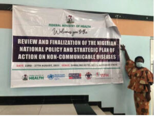 A proposal was developed by the WFH and the HFN, and was reviewed by representatives from the Nigerian Federal Ministry of Health and the World Health Organization (WHO). The ministry then held a five-day meeting with representatives from the WFH, the HFN, the WHO, and other stakeholders, to draft a new national noncommunicable diseases (NCDs) policy. Stakeholders present during the review meeting included the WHO, the Ministry of Health, the HFN, experts representing the interests of the five other NCDs (hypertension, diabetes, cardiovascular diseases, mental health and sickle cell disease), and other stakeholders.