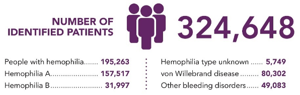 The report includes data on over 324,000 patients: 195,263 people with hemophilia (PWH), 80,302 people with VWD, and 49,083 people with other rare bleeding disorders.