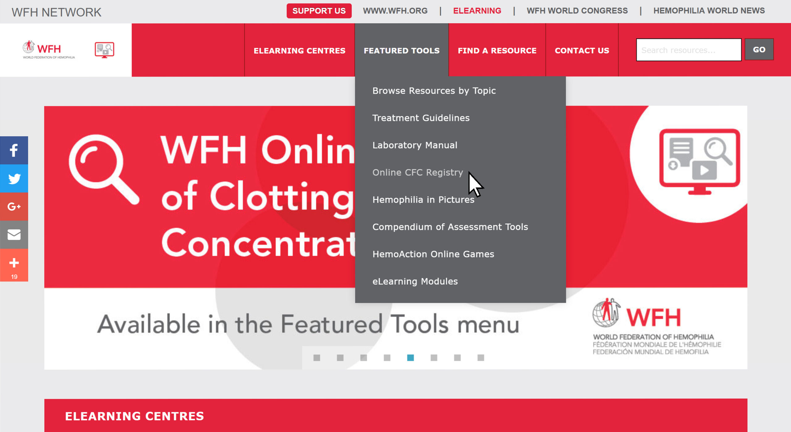 The Online CFC Registry is found under the “Featured Tools” drop-down menu on the WFH eLearning Platform.