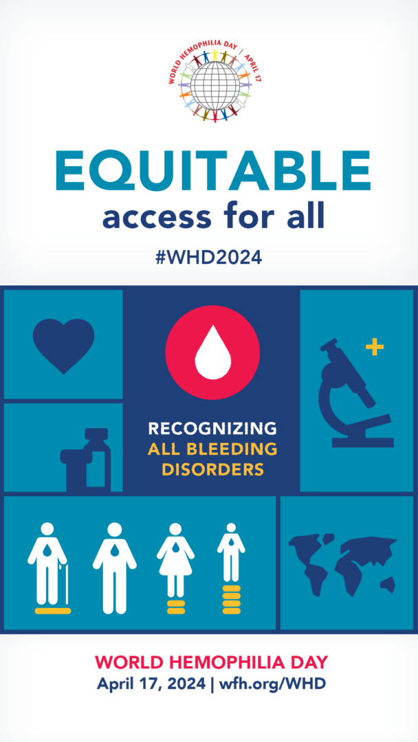 In just a couple months, the world will celebrate World Hemophilia Day on April 17, 2024. The theme of the event this year is “Equitable access for all: recognizing all bleeding disorders”. The World Federation of Hemophilia (WFH) vision of Treatment for All is for a world where all people with inherited bleeding disorders have access to care, regardless of their type of bleeding disorder, gender, age, or where they live.