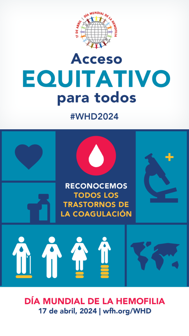 En tan solo un par de meses, el mundo celebrará el Día mundial de la hemofilia, el 17 de abril de 2024. El tema del evento de este año es Acceso equitativo para todos: Reconocemos todos los trastornos de la coagulación. La visión de Tratamiento para todos de la Federación Mundial de Hemofilia (FMH) es la de un mundo en el que todas las personas con trastornos de la coagulación hereditarios tengan acceso a la atención, sin importar su tipo de trastorno, su género, su edad o el lugar donde vivan.