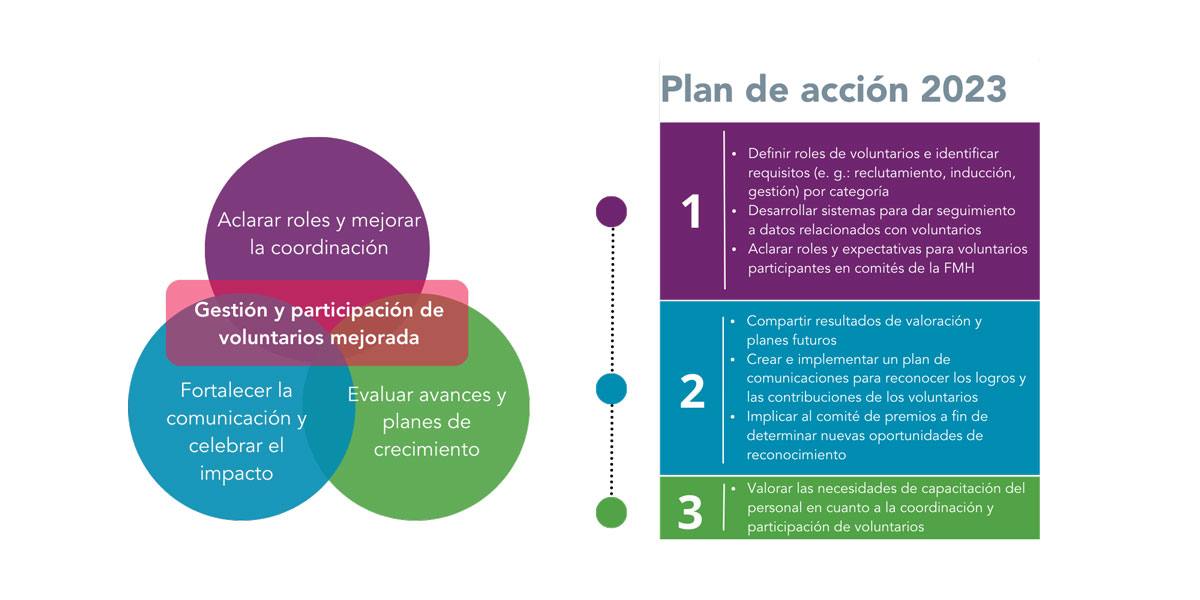 El más reciente proceso de planeación estratégica de la FMH reconfirmó la invaluable contribución de sus voluntarios a fin de lograr nuestra misión de mejorar y preservar la atención para personas con trastornos de la coagulación hereditarios alrededor del mundo. También destacó la necesidad de asegurarnos de que interactuamos con nuestros voluntarios de manera significativa y eficaz. Con este propósito nos comunicamos con ellos en el otoño de 2022 a fin de conocer más sobre sus experiencias de colaboración con nosotros.