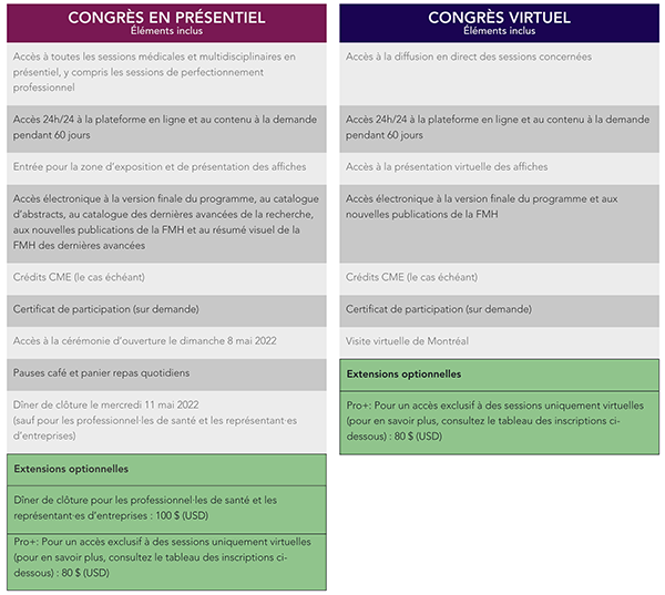 Le Congrès mondial 2022 de la FMH se déroulera sous une forme hybride, permettant aux participants d’y assister en personne au Centre de congrès de Montréal ou en ligne via la plateforme virtuelle.