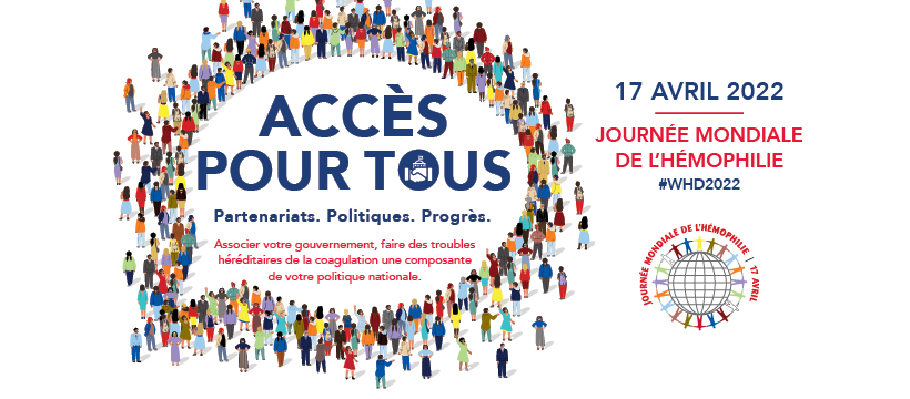 Le 17 avril est la Journée mondiale de l’hémophilie. Le thème de notre événement cette année sera « Accès pour tous : Partenariats. Politiques. Progrès. Associer votre gouvernement, intégrer les troubles héréditaires de la coagulation dans la politique nationale ». En sensibilisant les décideurs et en attirant leur attention sur l’hémophilie et les autres troubles héréditaires de la coagulation, nous pouvons renforcer l’accès durable et équitable à une offre de soins et aux traitements.