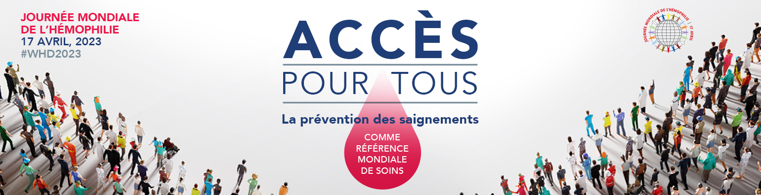 - Plus que x semaines avant la #JournéeMondialeHémophilie ! Cette année, la #WHD2023 rassemble notre communauté autour du thème « Accès pour tous : la prévention des saignements comme référence mondiale de soins ». Nous partagerons nos récits sur les actions mis en place par notre communauté auprès des gouvernements.. Partagez votre histoire sur https://stage1.wfh.org/fr/journee-mondiale-de-lhemophilie/