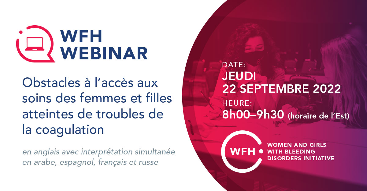 Un groupe d’intervenantes composé de professionnelles de santé aux spécialités diverses soulignera l’importance d’une approche complète des soins dans la prise en charge des femmes et filles atteintes d’un trouble de la coagulation. On retrouvera entre autres Dawn Rotellini (États-Unis), membre du conseil d’administration de la FMH et présidente du Comité sur les femmes et les filles atteintes d’un trouble de la coagulation ; le Dr Roshni Kulkarni, (États-Unis), membre du Comité sur les femmes et les filles atteintes d’un trouble de la coagulation ; le Dr Michelle Lavin (Irlande), présidente du Comité sur la maladie de Willebrand et autres troubles rares de la coagulation ; le Dr Elizabeth Pumpure (Lettonie), gynécologue-obstétricienne, et Anne-Louise Cruickshank (Afrique du Sud), infirmière. Une interprétation simultanée sera disponible en français, espagnol, russe et arabe.
